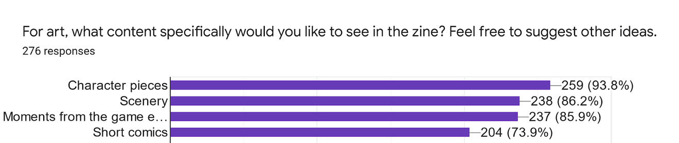 Thank you to everyone who filled in our interest check.We are overwhelmed that 276 people got in touch to tell us they’d like to see a zine for Dishonored’s 10th anniversary next year!Here is a summary of the results 😁